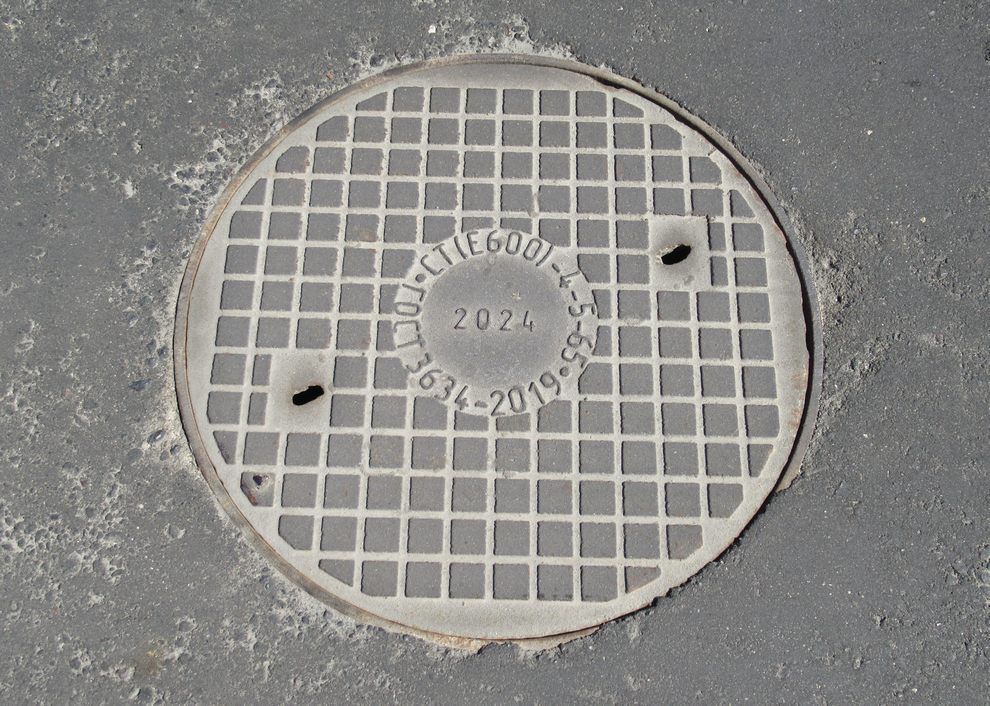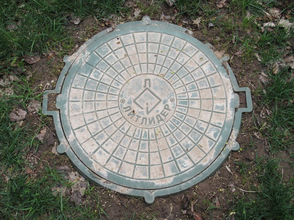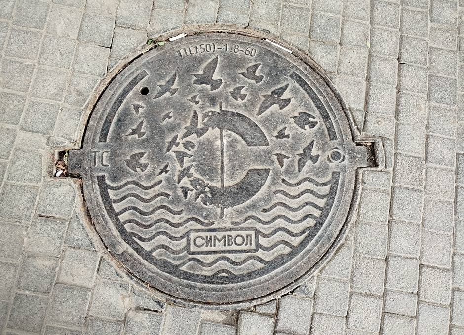 2. Канализация с едва различимой паучьей закорючкой посередине, которая должна означать логотип завода.